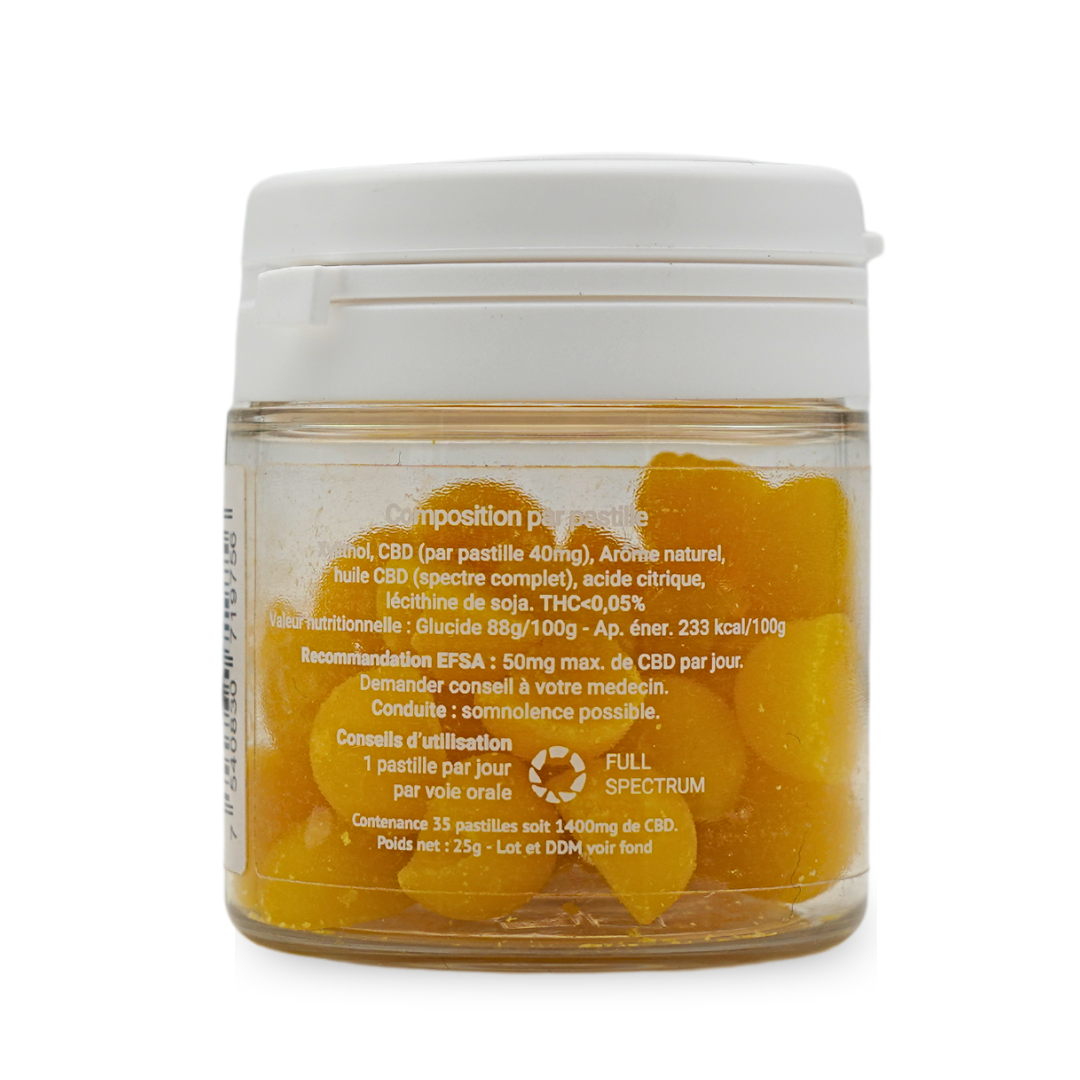 - CBD (40 mg pro Lutschtablette): Jede Lutschtablette enthält eine großzügige Dosis Vollspektrum-CBD für Ihr Wohlbefinden.
